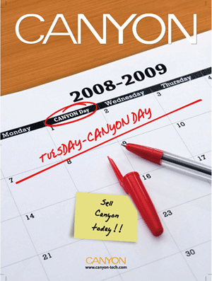 GORINCHEM, the Netherlands – CANYON is happy to announce special promotional days for its customers from all around the world. From now on, Tuesdays are synonym of CANYON with the ‘Tuesday – CANYON DAY’ campaign. This new initiative was successfully launched on the 25th of November 2008, and will continue throughout the year 2009.